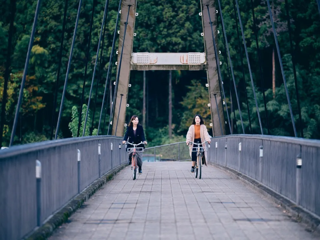 秋川渓谷の水辺をあちこち巡る足として、最適なツールが自転車です。秋川渓谷の長年の課題だった地域観光における二次交通の課題を、駅前すぐのシェアサイクル「東京渓谷サイクリング」(※)と店舗でのレンタサイクルで解決します。駅を降りたらすぐに自転車に飛び乗って、渓谷の水辺にたどり着けます。電動アシスト自転車なら、立体的な地形が特徴の秋川渓谷周辺で、移動そのものがアトラクションに!