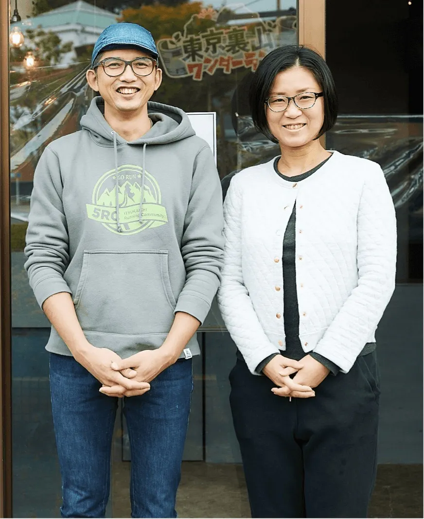 皆さんはじめまして。東京裏山ベースのジンケンとミチコと申します。私たちは7年前、秋川渓谷の玄関口であるJR武蔵五日市駅前に、アウトドアアクティビティと地域観光の拠点「東京裏山ベース」を立ち上げました。裏山ベースは、当時まだ閑散としていた武蔵五日市駅前に様々なコミュニティが生まれるきっかけとなり、自転車やトレイルランニングといった自然の中での遊びの起点・情報発信基地として、武蔵五日市~檜原村の秋川渓谷エリア、さらにはその奥に広がる秩父多摩甲斐国立公園への玄関口となる施設として、とくにアウトドア愛好家に広く認知されていきました。ここから地域に新たな賑わいと交流が生まれ、駅前の風景が変わるきっかけにもなりました。