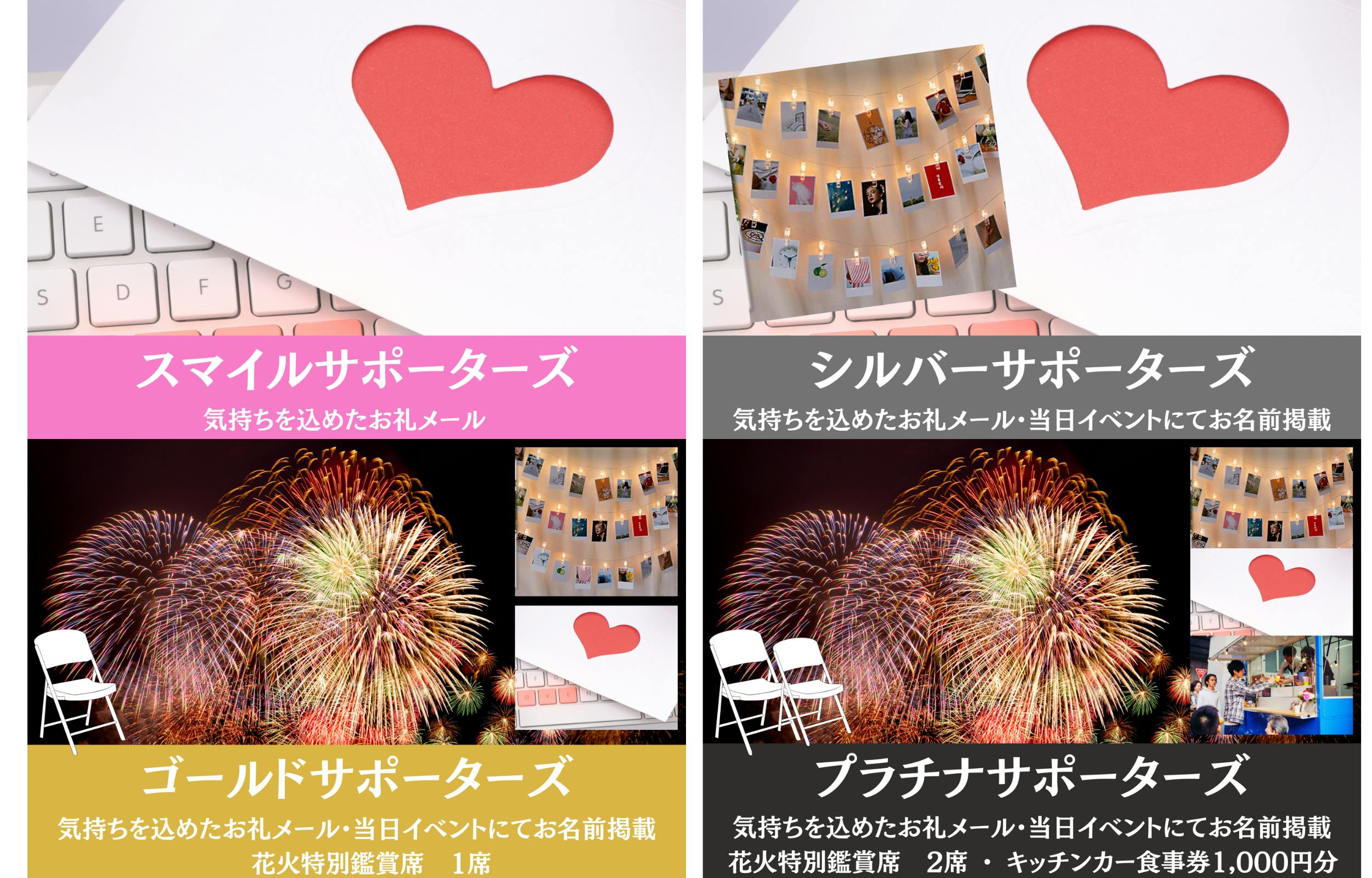 ◉プラチナサポーターズ(お礼のメール+当日イベントにてお名前の掲載+花火特別鑑賞席2席+当日キッチンカー食事券1,000円分)