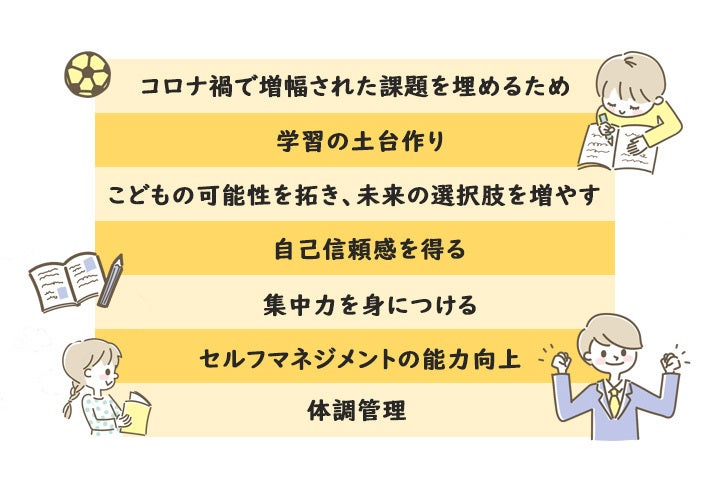 行動自粛も解除された今、保護者は仕事が忙しく、こどもと過ごす時間が少なくなっています。また、こどもたちが身につけられるはずであった学習習慣は定着しにくいものになりました。さらにこのコロナ禍では、学校も家庭もゆとりを失いました。この3年で関係性の希薄さが要因となる出来事が山ほど起きています。