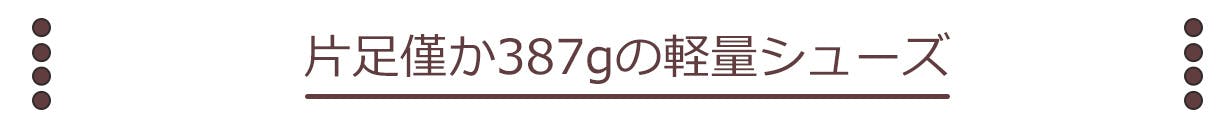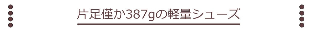 重量は片足わずか約387g!一般的な革靴より軽くて快適。長時間使ってこそ違いに差が出る軽量シューズです。オフィスでの使用はもちろん、休日や旅行でも大活躍です。