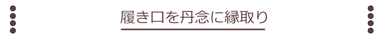 靴の履き口は、毎回の着脱でヨレにくいように、丹念に縁取り加工してあります。