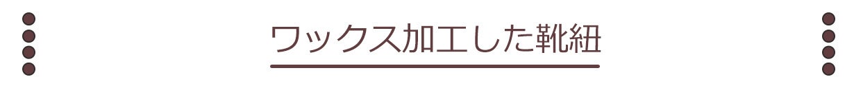 靴紐にもワックス加工を施し、全体的に明るく仕上げました。靴と質感を合わせ調和をとっています。湿気を抑え、革の表面を保護する働きもあります。
