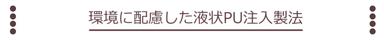 この「ビジネスが楽になる本格レザーシューズ」は、液状PU注入製法で成形しました。アッパー(靴の甲)とソール(靴底)を密着させて一体型に成形することで、接着剤を使用する必要がなくなり、環境への負荷を減らしながら、高い耐久性と両立しました。