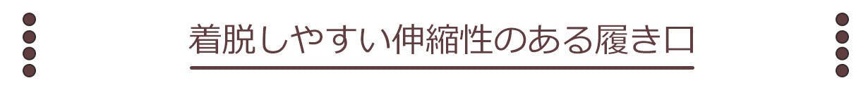 靴の履き口には伸縮性を持たせた設計により、靴の着脱もとても簡単、頻繁に靴を脱ぐ機会のある方も、サッと靴を履けるので着脱もスムーズにこなせます。