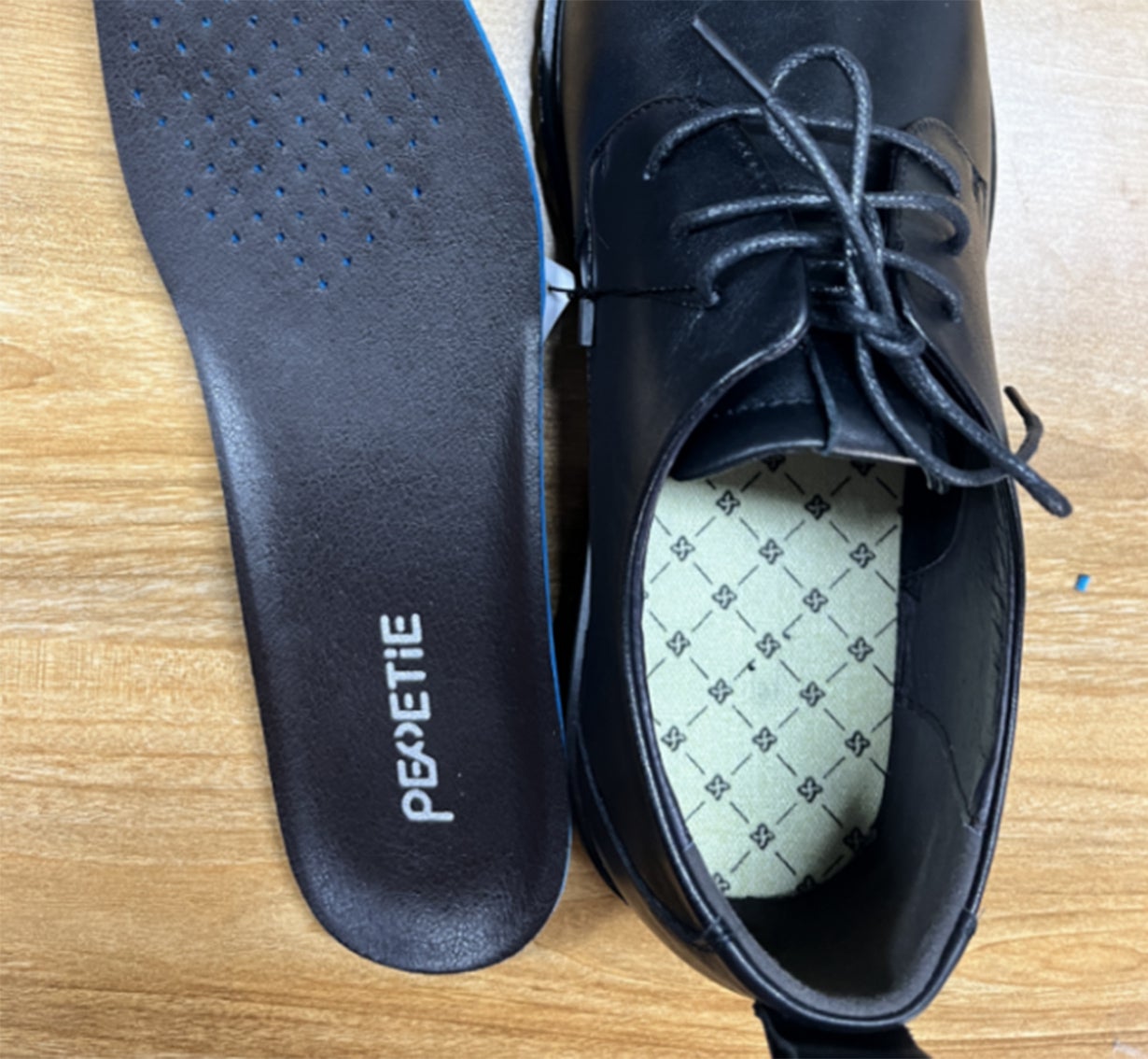インソール(中敷き)には豚革とスポンジで成形した特別な弾力ソールを使用しました。