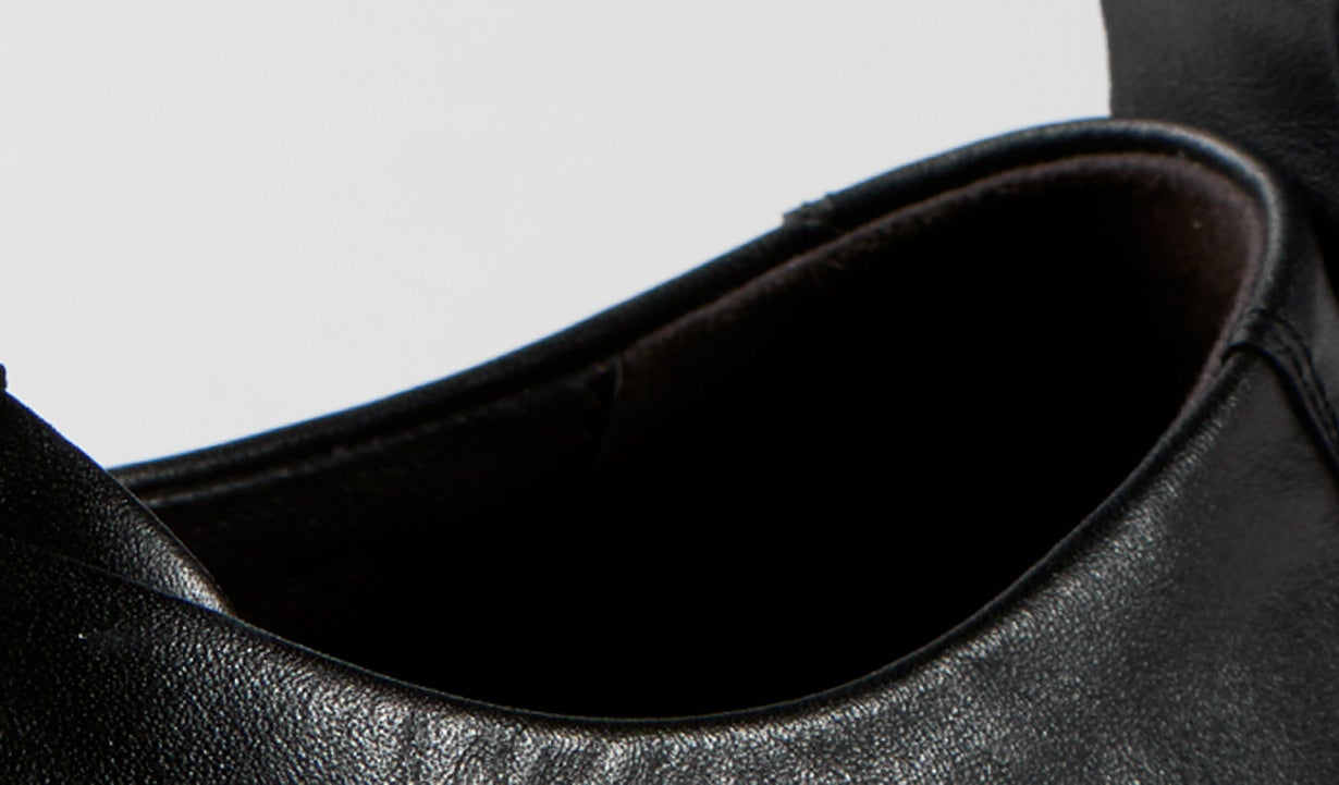 靴の甲(アッパー)は、牛のトップレザーを採用。牛のトップレザーは、強度が強く、弾力性に富んでおり、高品質な靴作りに適しています。天然皮革は柔らかくて繊細、天然物の自然の通気性が靴の蒸れを抑え、快適な履き心地をサポートします。