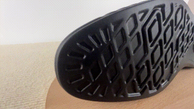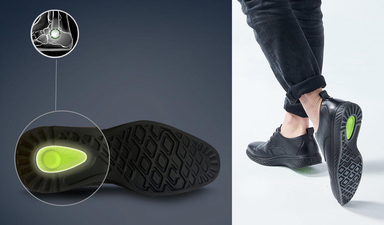靴のかかとには、弾力性のあるTPU(熱可塑性ポリウレタン)を使用しました。柔軟性と耐摩耗性に優れており、まるでスポーツシューズのような軽快な履き心地です。