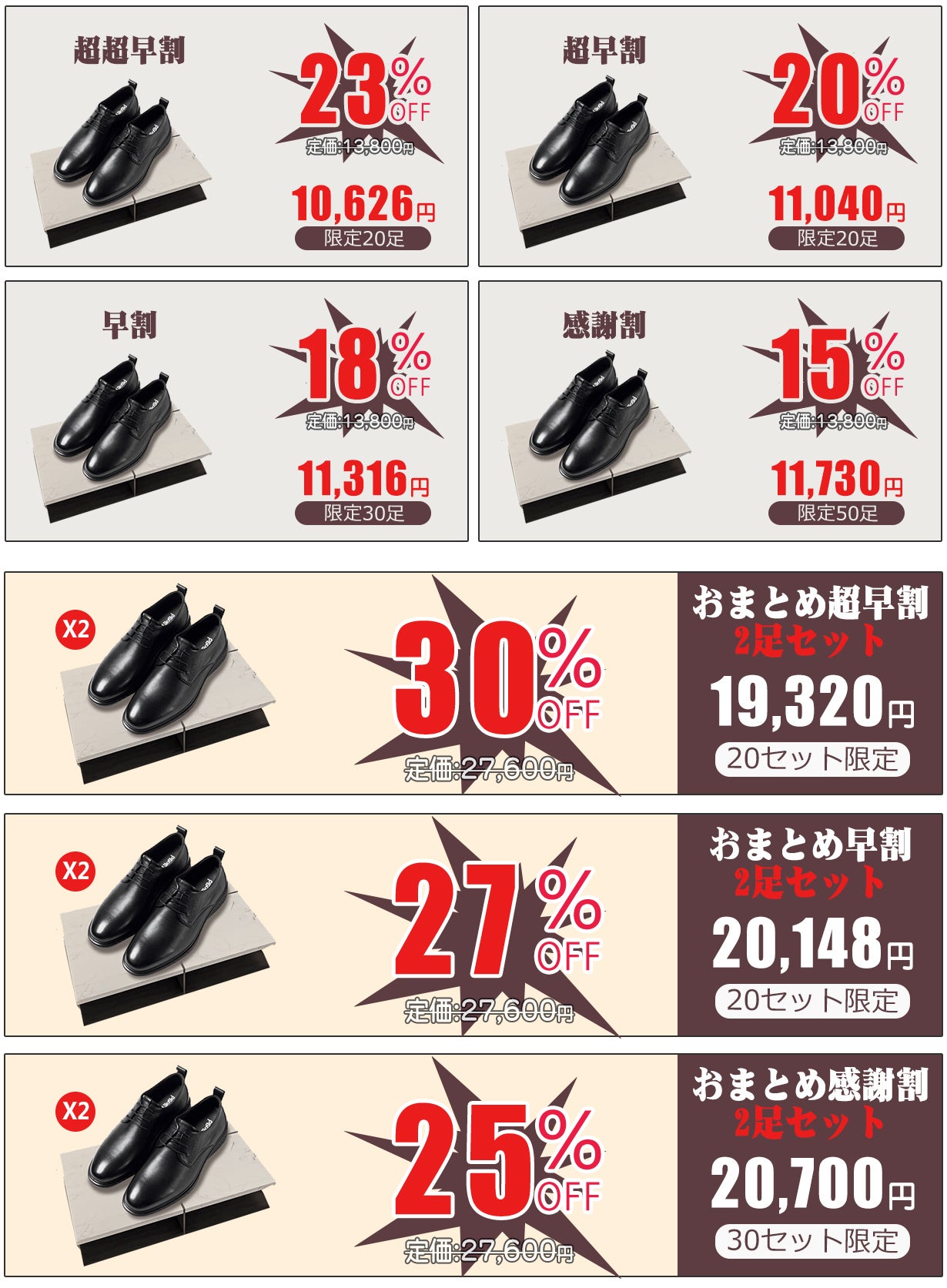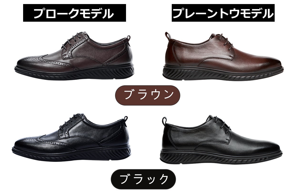 「ビジネスが楽になる本格レザーシューズ」は2つのスタイルと2つのカラーの組み合わせから、お好みに合わせてお選びください。