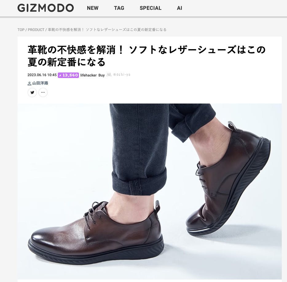 2023/06/21 09:45デジタルデバイス情報や最新のガジェット情報から、テクノロジー、サイエンス、ビジネス、エンターテイメントの情報まで中心に紹介するWebサイト「GIZMODO JAPAN(ギズモード・ジャパン」にて紹介されましたのでぜひご覧ください。■GIZMODO JAPAN様掲載記事革靴の不快感を解消! ソフトなレザーシューズはこの夏の新定番になるhttps://www.gizmodo.jp/2023/06/machi-ya-start-leathershoes-671345.html もっと見る