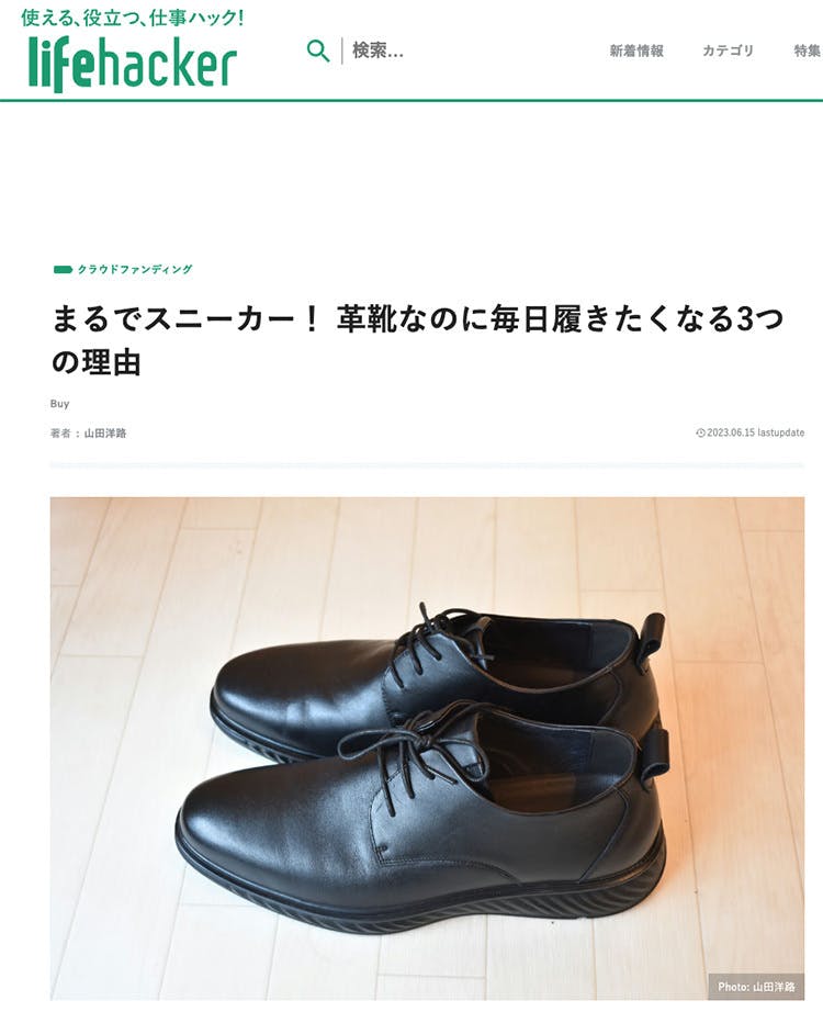 2023/06/21 09:48lifehacker様に当社の【運動靴のような快適さ】片足387g!履き心地にこだわった本格レザーシューズのレビュー記事が掲載されましたのでぜひご覧ください。■まるでスニーカー! 革靴なのに毎日履きたくなる3つの理由https://www.lifehacker.jp/article/machi-ya-review-leathershoes-671345/ もっと見る