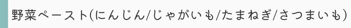 野菜ペーストは、にんじん/さつまいも/たまねぎ/じゃがいもの計4種類をご用意しました。