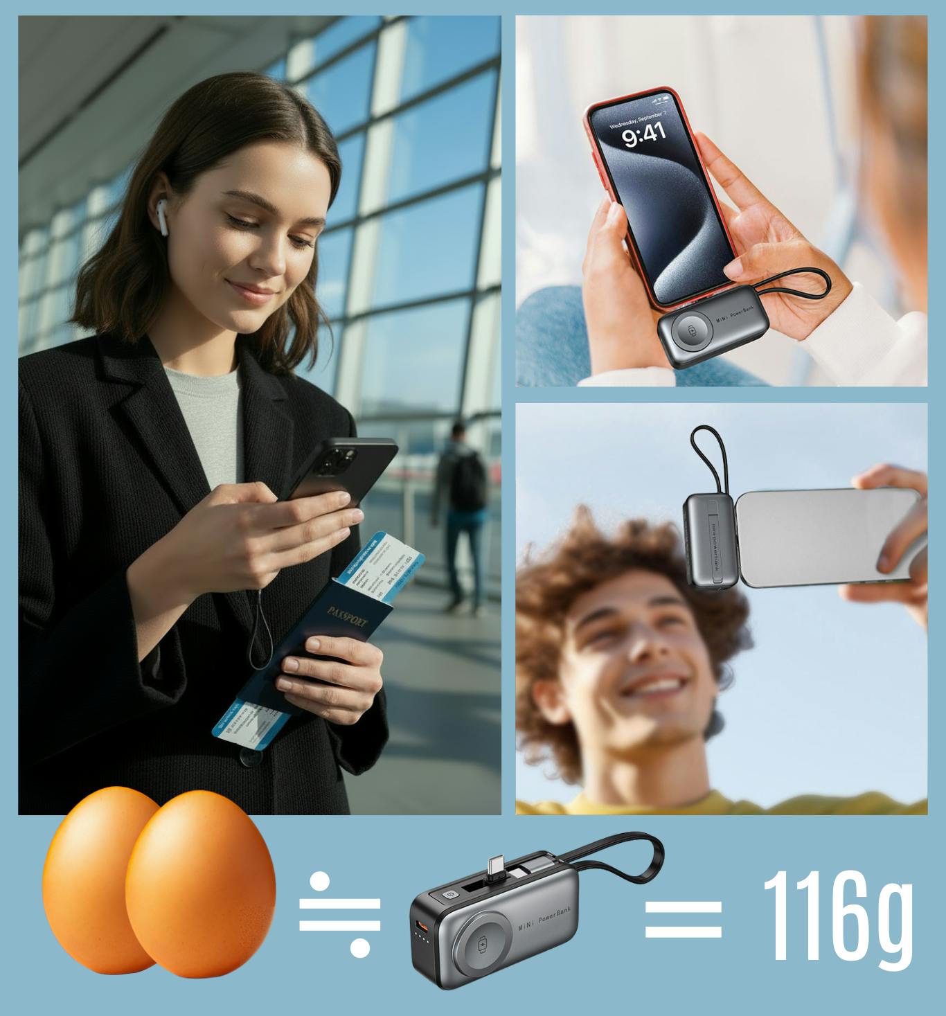 充電の際にケーブルのいらないモバイルバッテリー「Energ-yi 2」は、このサイズでなんと3000mAh内蔵。LEDの残量表示や、スマートケーブルで充電できる点もかなり便利な逸品です。(※PSEマーク表示済)