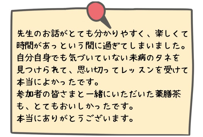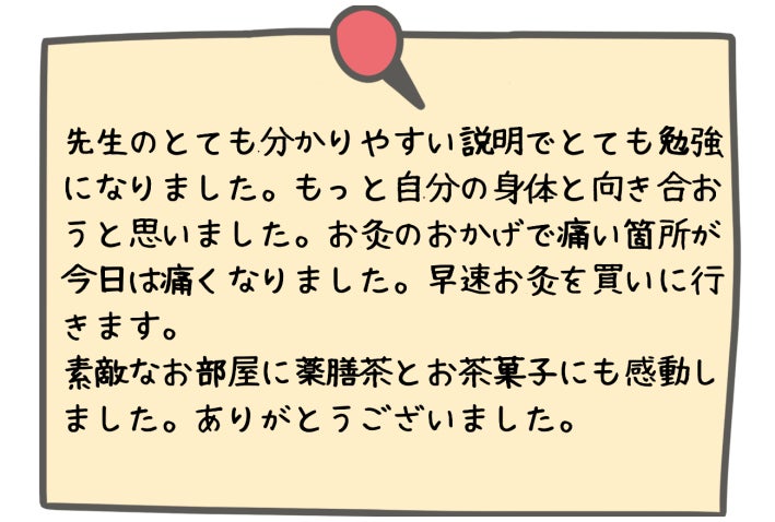 メインのお灸教室(1レッスン1,650円)ご参加後のアンケートでは「安すぎます!」とのコメントを沢山いただきます。