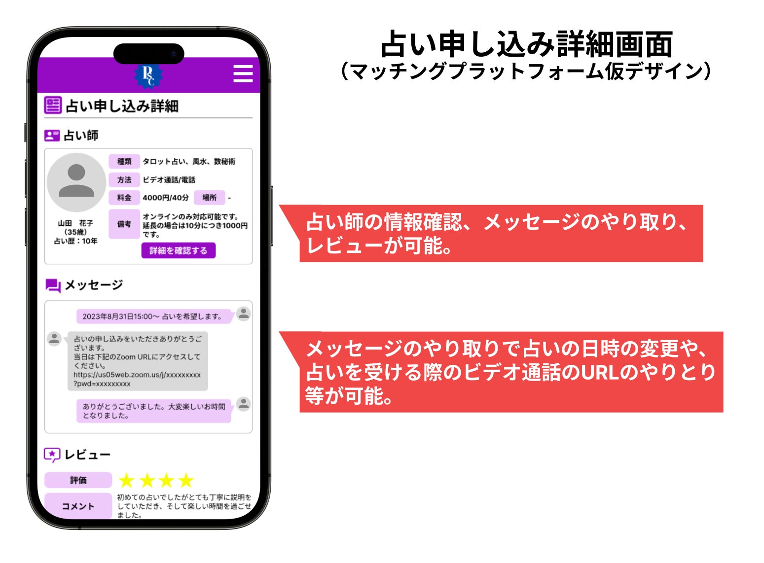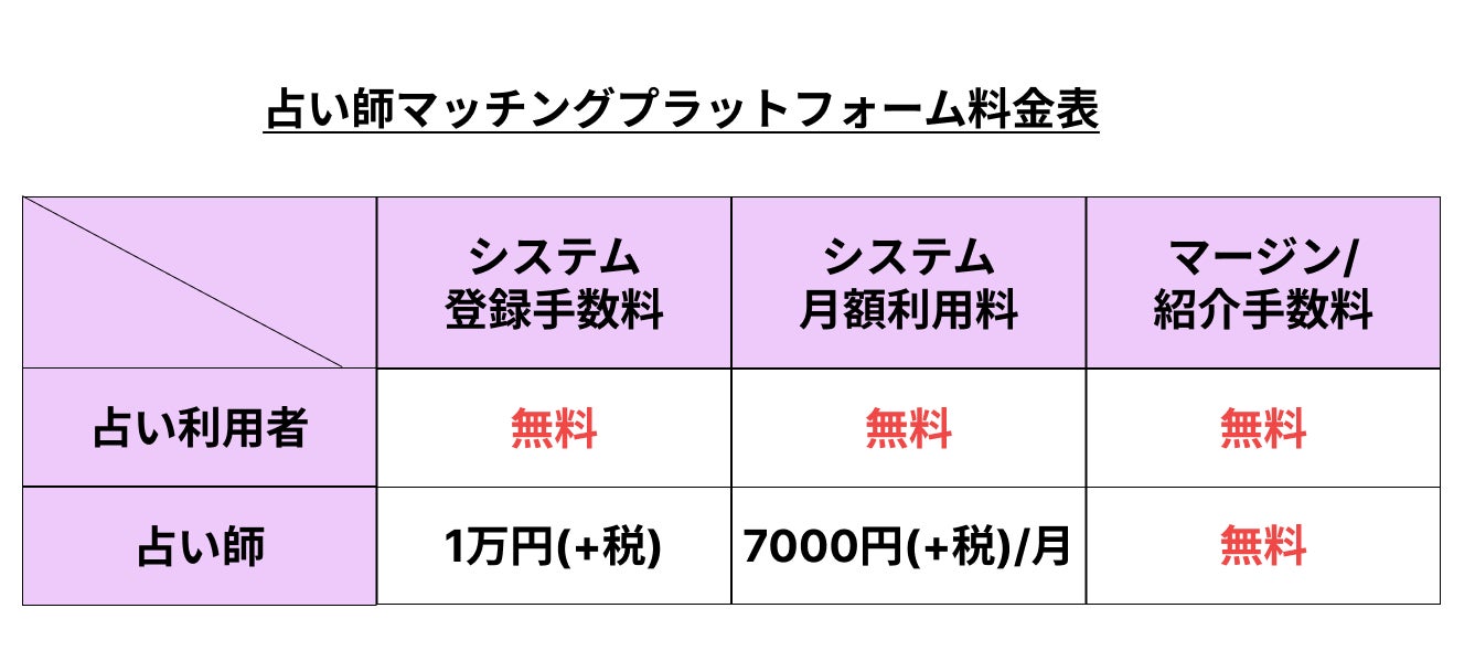 全国各地の占い師から自分好みの占い師を選んで占いをできる占い師マッチング/占い予約プラットフォームを構築したいと考えております。