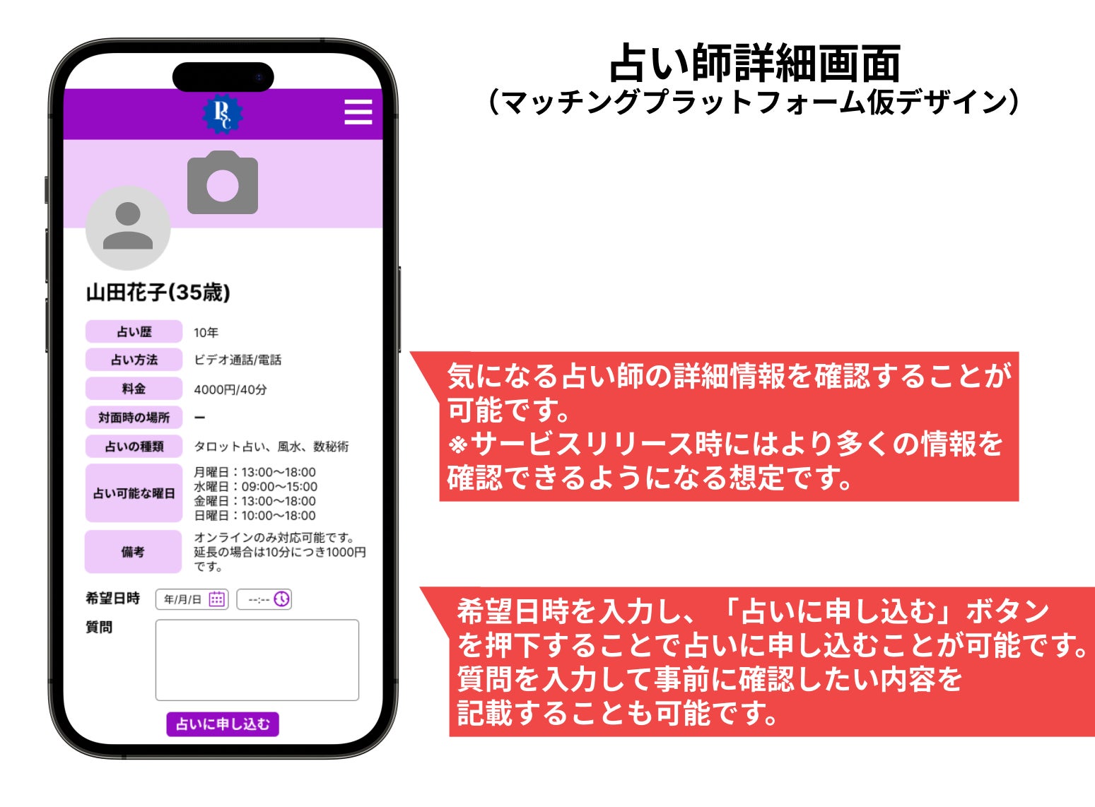 そして今回、占い師業界というIT化が進んでいない業界にITプラットフォームを導入することでより便利にそして快適に占いを受けることができるような仕組みを構築したいと考えております。