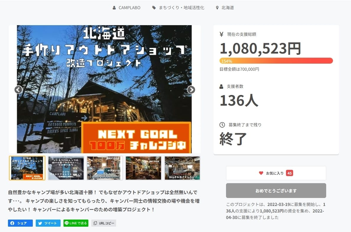 【2022年にクラウドファンディングで100万を達成】