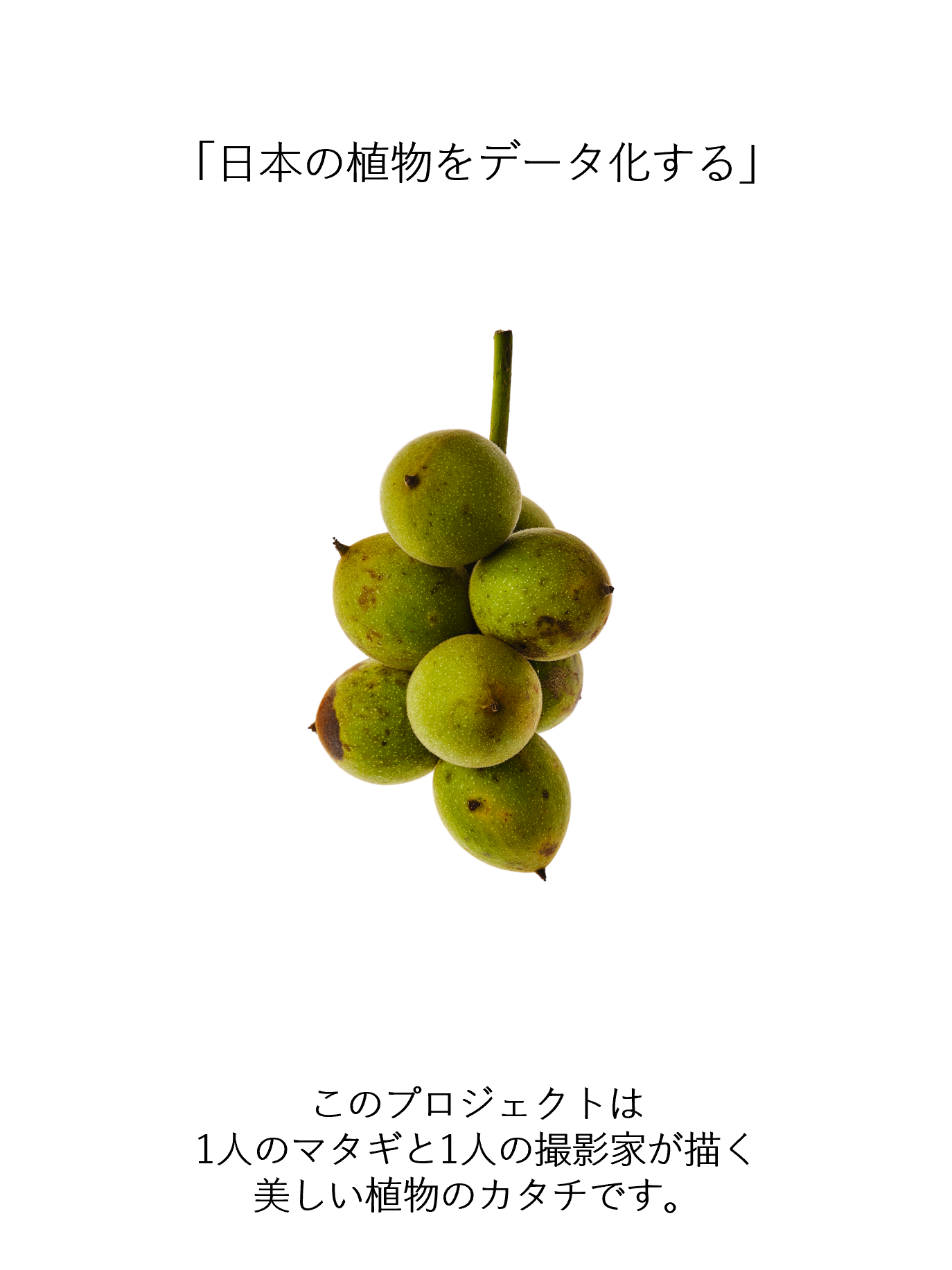 このプロジェクトは一人のマタギと撮影家がタッグを組み、日本の野山に自生する植物を撮影してデータ化し、そのデータ化した植物=iPlantsで商品を作り、新たな価値を提供することを目的としています。これは現実世界の植物と非現実世界の植物を分ける活動であり、市場経済の過度な需要に比例して貴重な植物資源が失われるという不幸な未来から脱却する挑戦でもあります。