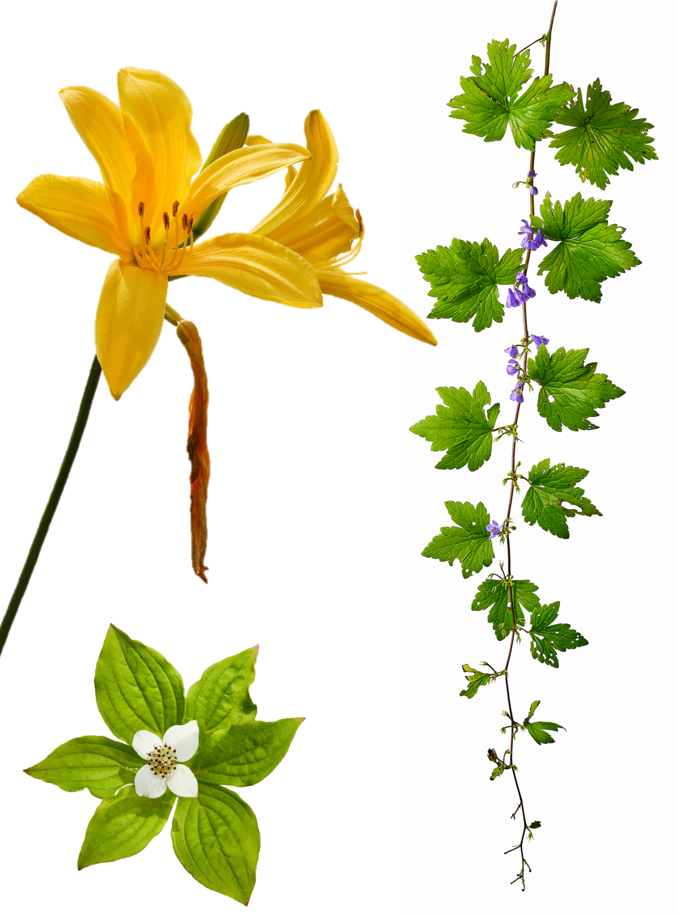 iPlantsを得るためには、まず野山へ出かけます。季節によってさまざまな表情を見せてくれる植物たち。その最も輝いている瞬間をiPlantsにするため撮影スタジオを現地で設営します。採取しても良い場所から植物体を切り取りスタジオへ持ち込みます。この時、どのような構図にするか決定しなくてはいけません。rPlantsとは異なり、iPlantsの場合は後からくるくると回してポーズを変更できないためです。撮影する範囲にも制限があります。植物によっては3分とたたず萎れてしまうものもいるのでスピード勝負の場面もあります。
