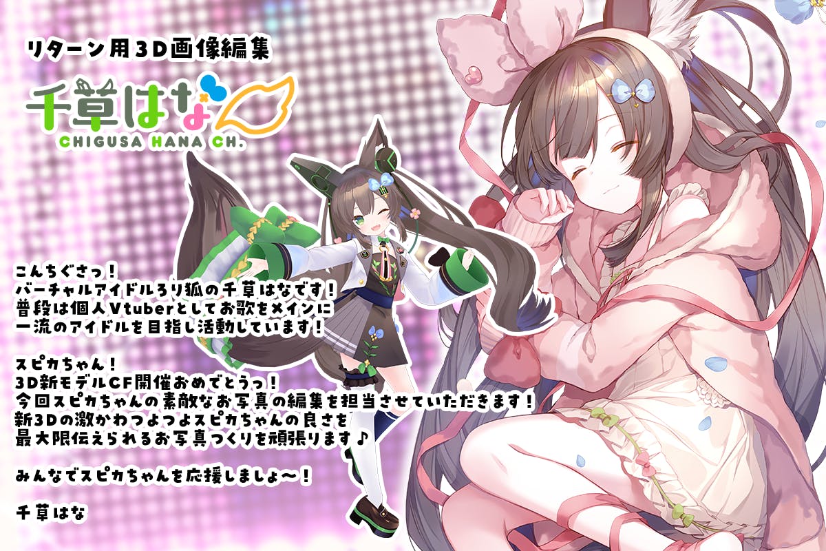 リターングッズに使用する「新3Dモデル撮りおろし写真」の画像編集を千草はなさまが担当してくださることになりました!