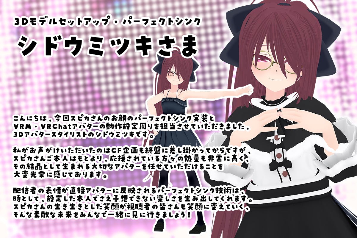 多くのVtuberさまをご担当していらっしゃる、確かな技術を持ったシドウミツキさまにお力添えいただけることになって、とても心強いです!
