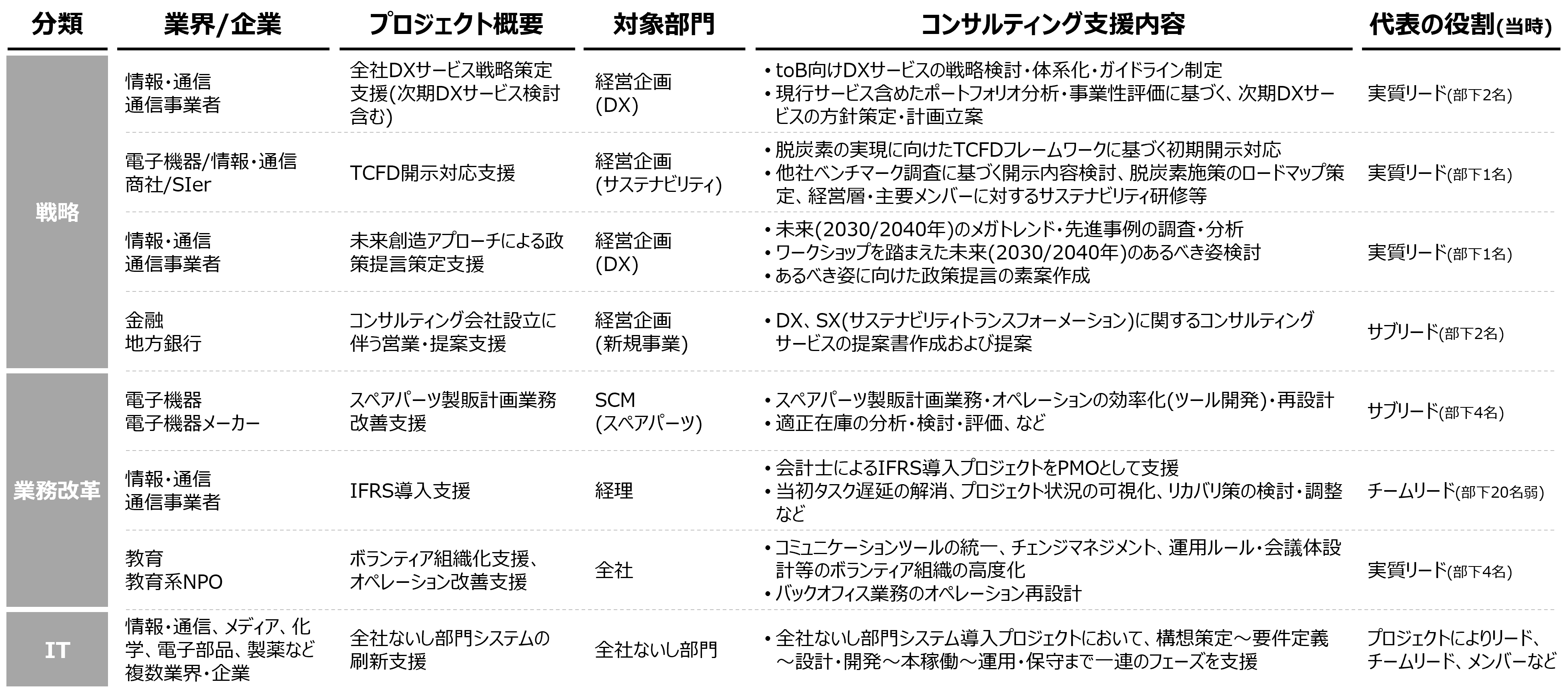 設立して間もないため社としての実績はありませんが、弊社代表のコンサルティング実績(抜粋)は以下の通りです。