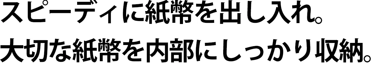 紙幣スペースは、出し入れしやすいように内部の角をなくし、滑らせやすい緩やかなスロープ状のデザインになっています。