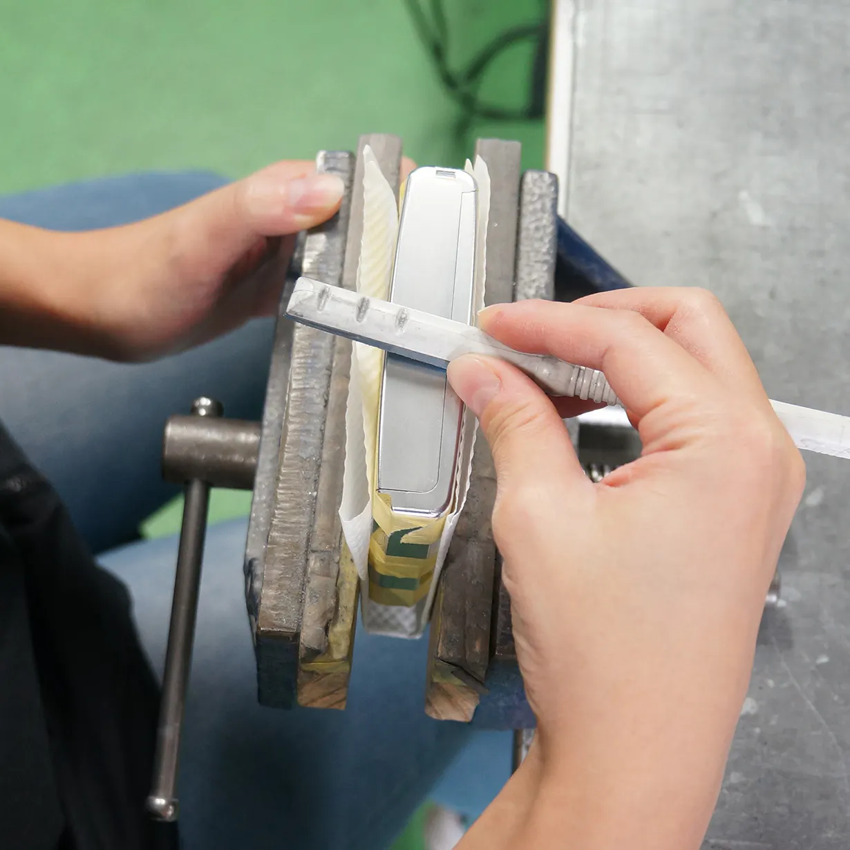 東京大田区の自社デザイン工房で、じっくりと1点ずつ時間をかけて削り出し、手仕上げで磨いて組み立てます。