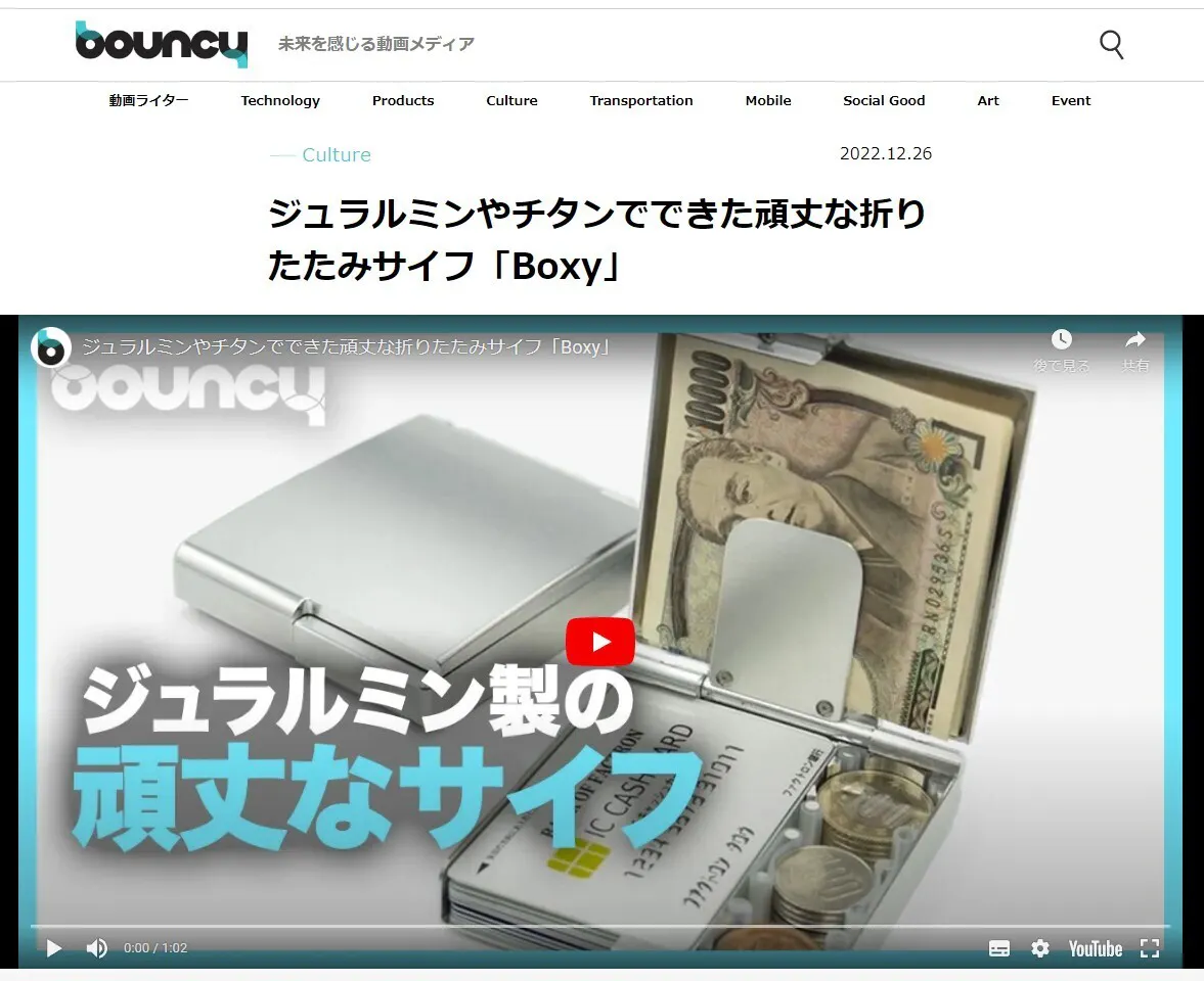 <ジュラルミンやチタンでできた頑丈な折りたたみサイフ「Boxy」>