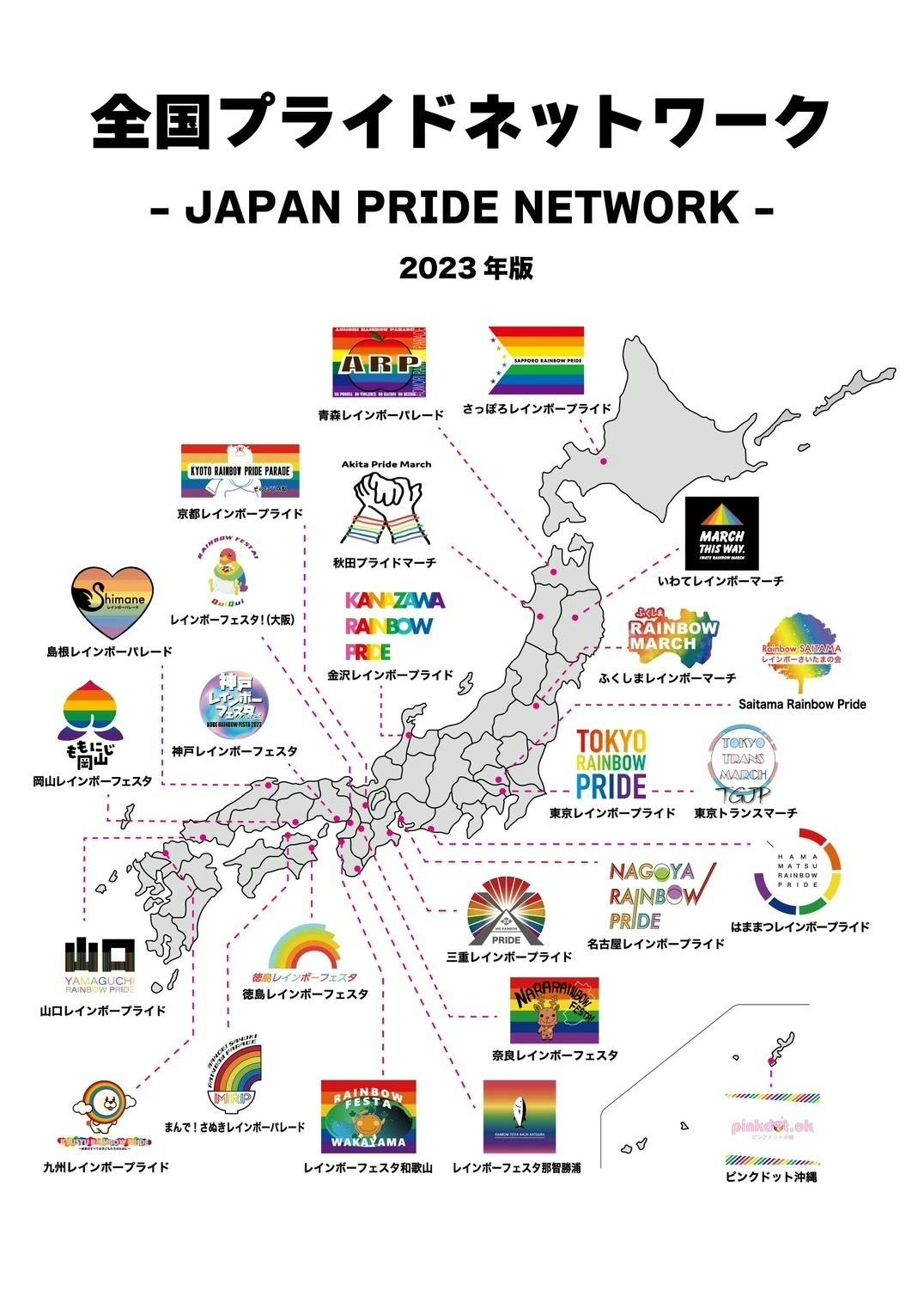 JAPAN PRIDE NETWORKとは、全国各地で開催されているプライドイベント主催団体のネットワークです。 現在30近くの団体が加盟し、全国各地のプライドイベントでJAPAN PRIDE NETWORKのブースを出展したり、年に数回開かれるオンラインミーティングを通して情報交換やノウハウの共有をおこなっています。
