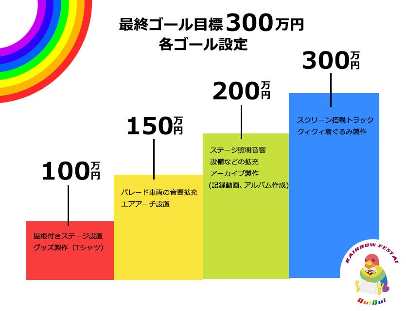 2023/10/01 16:00みなさまこんにちは!レインボーフェスタ!2023実行委員会のちひろです。いつも活動報告をご覧いただきありがとうございます。ついに昨日23時59分59秒をもちまして私たちのプロジェクトは無事にゴールすることができました!!目標総額100万円を大きく超えて...最終支援総額:104万2,500円支援者数:152人のみなさまにご支援いただきました!ご支援いただいたみなさまに心より感謝申し上げます。実行委員だけではこのプロジェクトは絶対に成功することはできませんでした。多くのみなさまがSNSで私たちのプロジェクトの情報拡散をご協力していただいたり、プロジェクトの応援メッセージでは温かいコメントをいただき、みなさまに支えられながら成功することができました!!私たちの感謝の気持ちはリターン品という形でお伝えいたします。ご支援いただいた方は、実行委員が心を込めてリターン品を包装し、順次発送作業を行っております。お礼メールや動画お礼メッセージは後日お送りしますのでお楽しみにしておいてください♫今回の私たちのプロジェクトは、みなさまのお力や優しさを感じることができました!来週はいよいよ、大阪市北区・扇町公園で「レインボーフェスタ!2023」が開催します!!「自分らしく生きることの大切さ」、「性の多様性を尊重し合う喜び」を、直接ご参加していただき、肌で感じてほしいなと思います!!みなさまの想いと共に、いただいたご支援金を大切に活用させていただき、今年もレインボーフェスタ!・関西レインボーパレード開催を成功させます!!みなさまのご参加を心からお待ちしております!最後になりますが、私たちのプロジェクトを応援・ご支援・ご協力いただき本当にありがとうございました!!! もっと見る