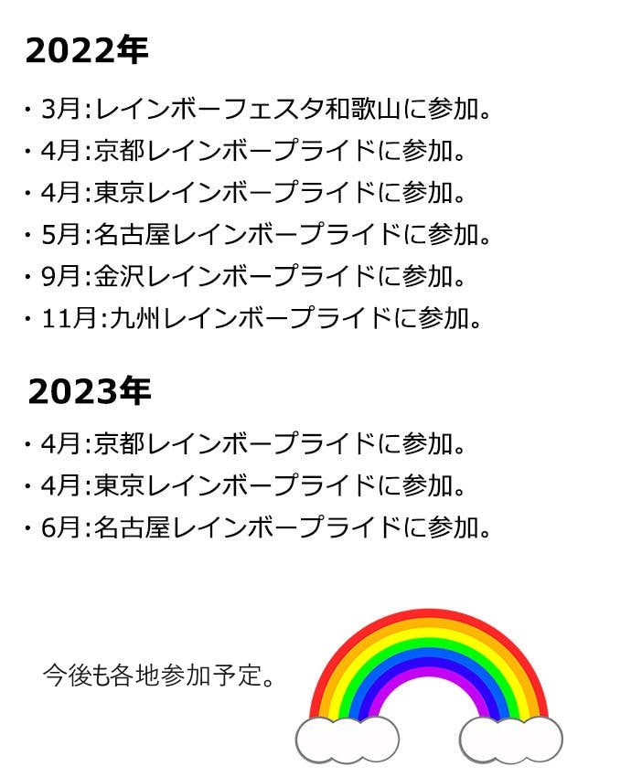 今年、またそれ以降もレインボーフェスタ!を開催していけるよう、皆さま方のご協力・ご支援をお待ちしております。よろしくお願いいたします。