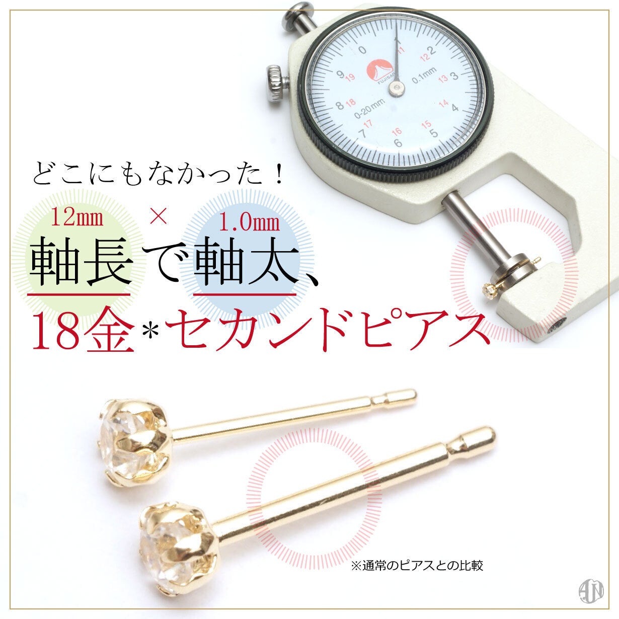 ② ファーストピアスに近い『18金の軸太1mmセカンドピアス』を開発しました。