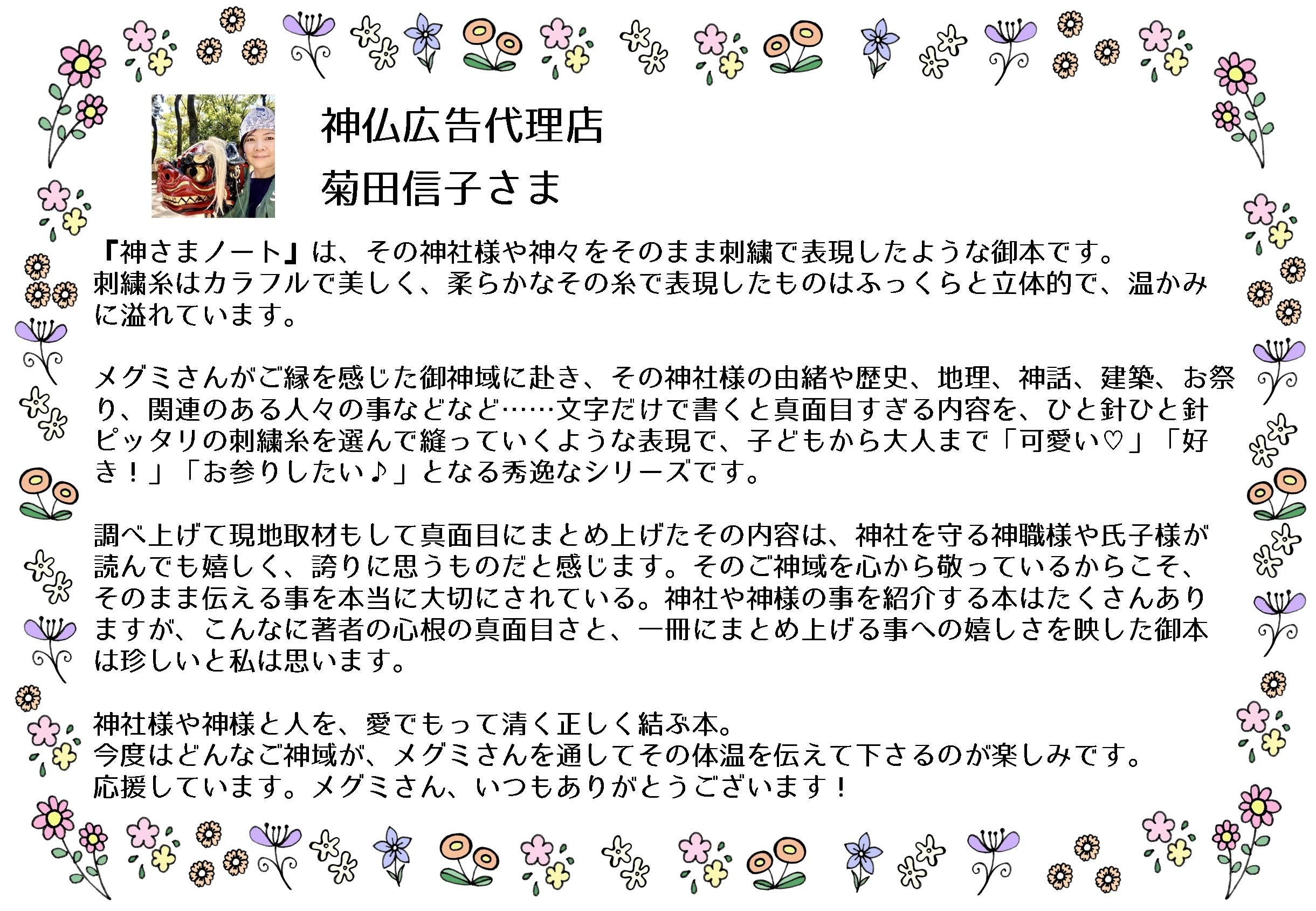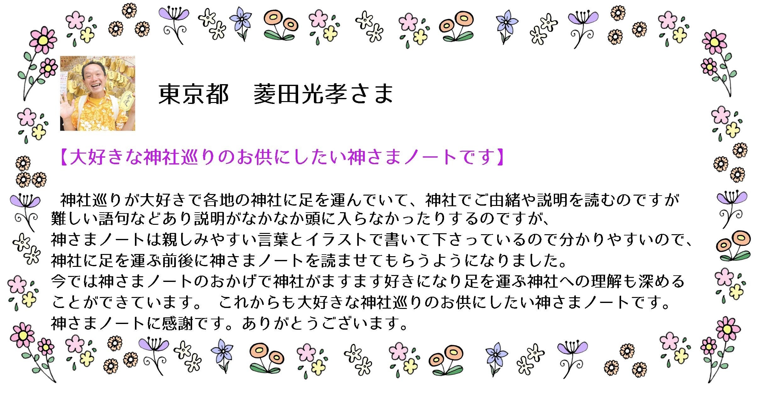 神さまノート5に掲載予定の伊豆美神社(東京都狛江市)の小町宮司様より応援メッセージを頂戴しました。