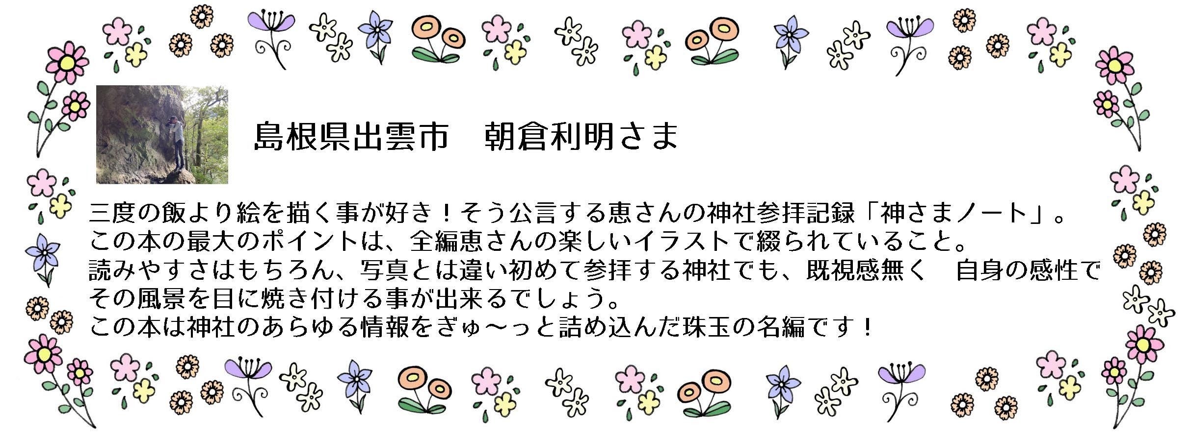 朝倉さんには昨年、出雲の神社をたくさんご案内いただきました。神さまノート5だけでは収まりきらず、神さまノート6にも渡るボリュームです!!ぜひお楽しみにしていただけると嬉しいです。