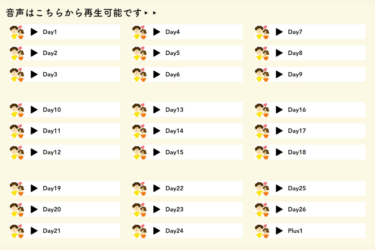 リスニングを強化するために、すべてのページにリスニング音源があります。何回でも繰り返し聞いていただけます!