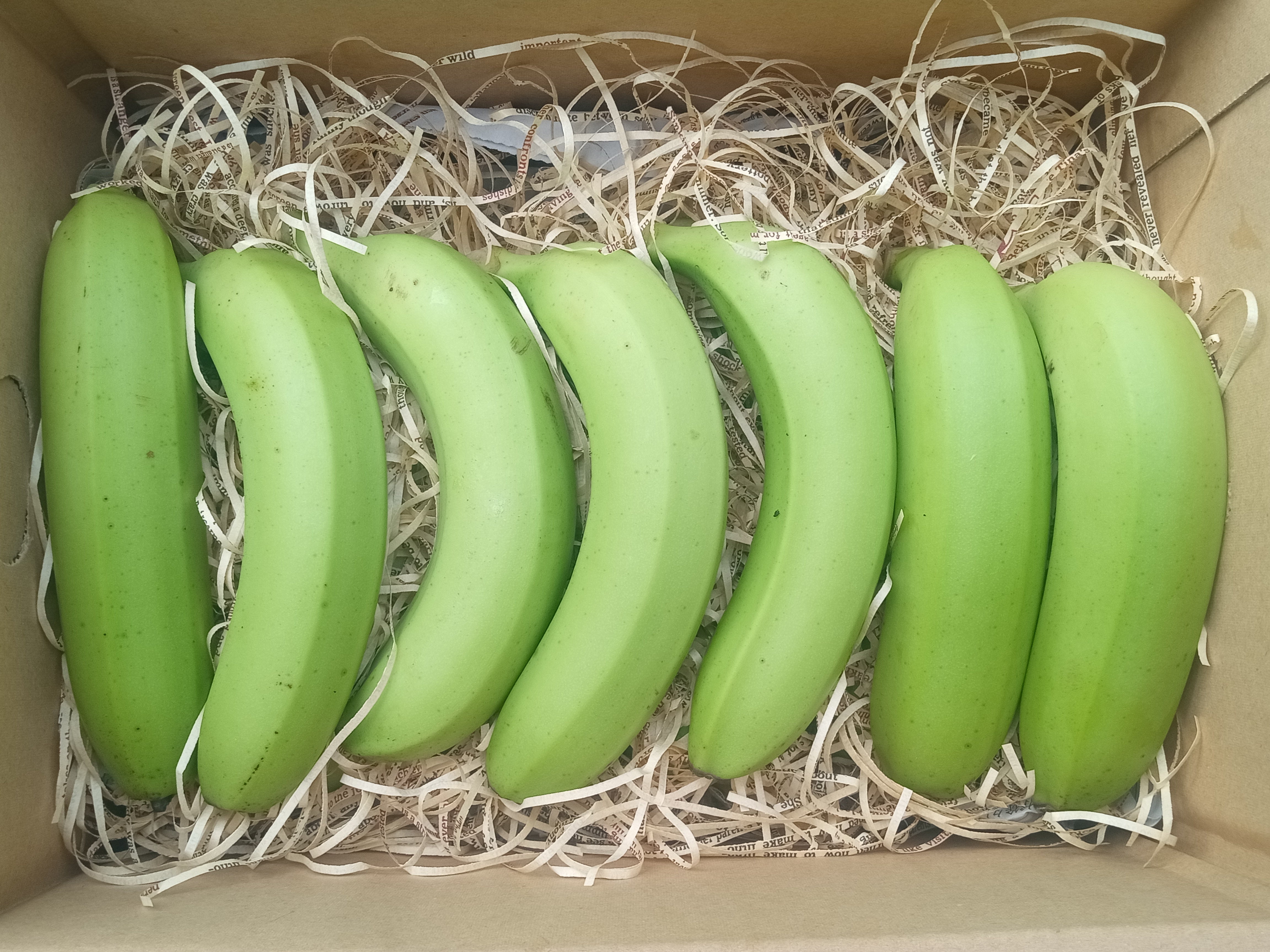 今国内に流通しているバナナの大半はジャイアントキャベンディッシュ種の系統ですが、昔はバナナと言えばグロス・ミッシェル種でしたが1950年代にパナマ病で世界中のグロス・ミッシェル種が姿を消し、パナマ病に強いジャイアントキャベンディッシュ種へと転換されました、かつて絶滅したと思われたグロス・ミッシェル種が偶々種子島に残っていてそれを育てています。味の特徴としてクリーミーで上品な甘さで飽きが来なく何本でも食べたくなってしまいます。