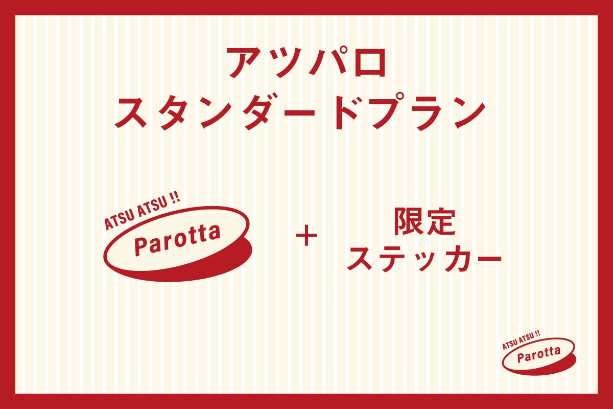 ATSU ATSU!! Parotta 2セットと、「どのインドパンが来るかお楽しみな限定ステッカー」をお届けします。