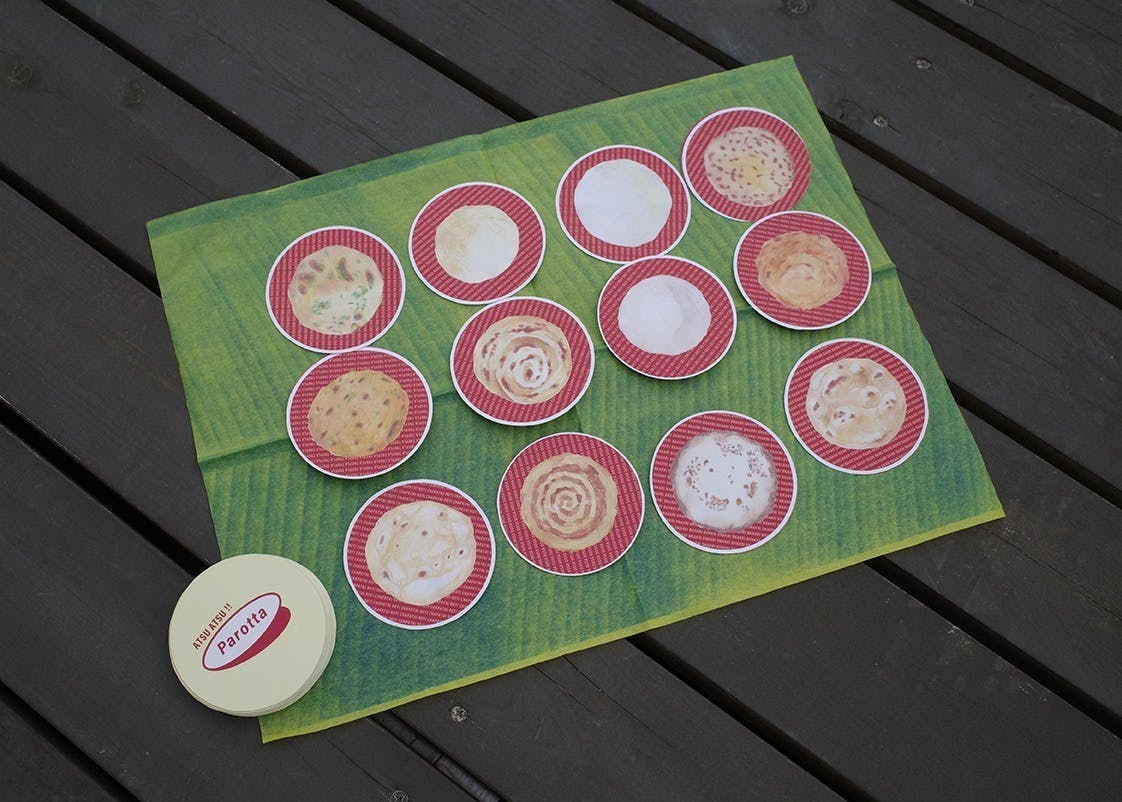 今回、カレーを題材にした新たなプロダクトとして、多くの種類があるインドパンを遊びながら学べるアナログゲーム「ATSU ATSU!! Parotta」を制作しました。