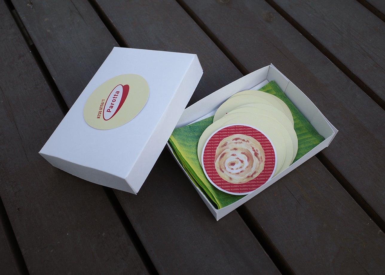 ATSU ATSU!! Parotta 1セットと、インドパン全12種類の限定ステッカーをお届けします。