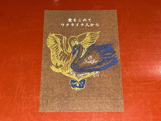 2023/05/30 22:59【ユリヤさんオリジナルカード】感謝のメッセージを、日本に避難されているウクライナ人の女性美術家、ユリヤ・ボンダレンコさんオリジナルのカードで送らせて頂きます。こちらの文字は16世紀のコザックの筆記体でスコロピスと言います。素早く書くといういみです。ユリヤさんは、銃撃で荒らされた現地のがれきを使って現代アートを制作されています。6月に静岡、8月に大阪で個展を開催され、制作費や諸経費を除いた売り上げは現地で戦争孤児の支援団体「チルドレン・オブ・ヒーローズ」に寄付されます。是非『ユリヤ ボンダレンコ』さんで検索してください。 もっと見る