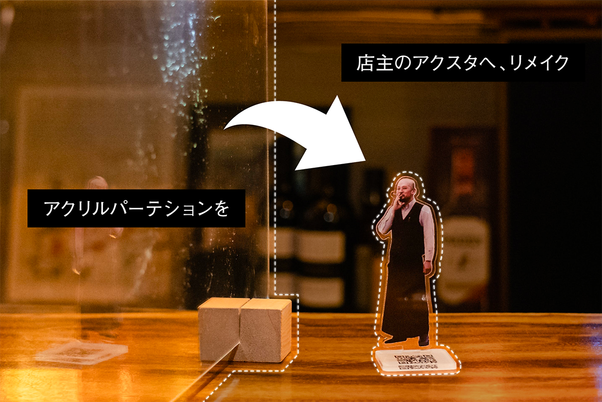 実験として何店舗かで「店主アクスタ」を実際につくって配布しました。「正直、よく理解できない」というご意見もあった一方で、面白がってくれるお店や常連さんもいらっしゃいました。