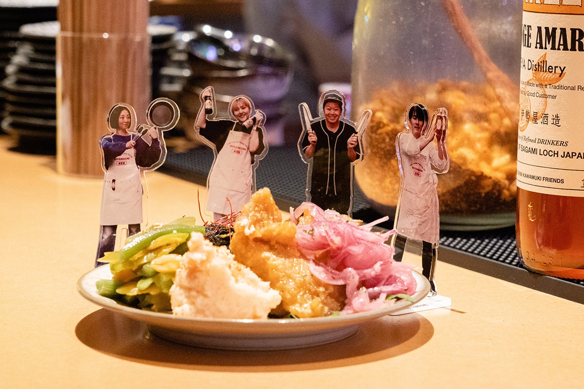 「店主アクスタ」を並べてお店の料理やお酒を撮り、お店やお客さまのSNS投稿に使う姿もみられました。