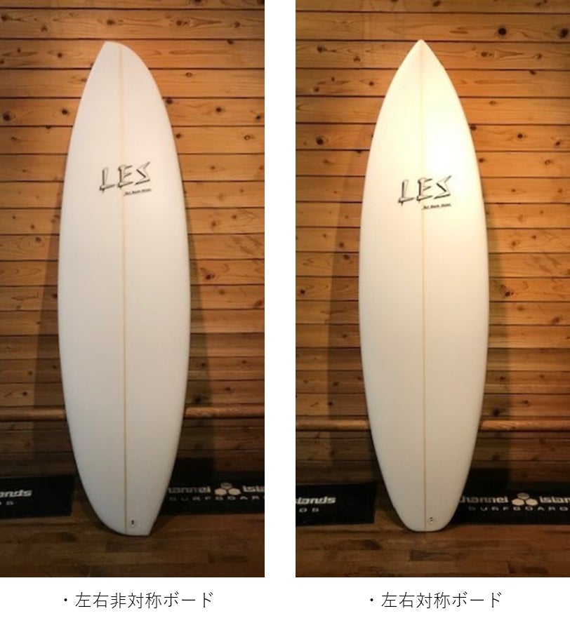 す。右側に割れる波に乗った場合、ボードの右側だけが波の面に接しています。同様に左側に割れる波に乗った場合、ボードの左側だけが波の面に接しています。つまり、左右対称のボードデザインにする必要はなく、ライダーの個性や乗り方によって左右のボードデザインを変える必要があります。自分でもこれまで3本の左右非対称のサーフボードを作りテストしました。左右対称のボードとは全く違う形なので乗り味に違和感があると思っていましたが、全く違和感なく乗ることができ、むしろ左右対称のボードよりも乗りやすかったです。