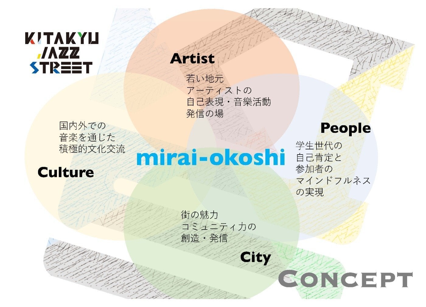 ジャズを中心にロック、ポップ、ゴスペル・・様々なジャンルのアーティストの参加により、子どもから大人まですべてのすべての人が楽しむことができる空間を提供する(プロ・アマ問わず)