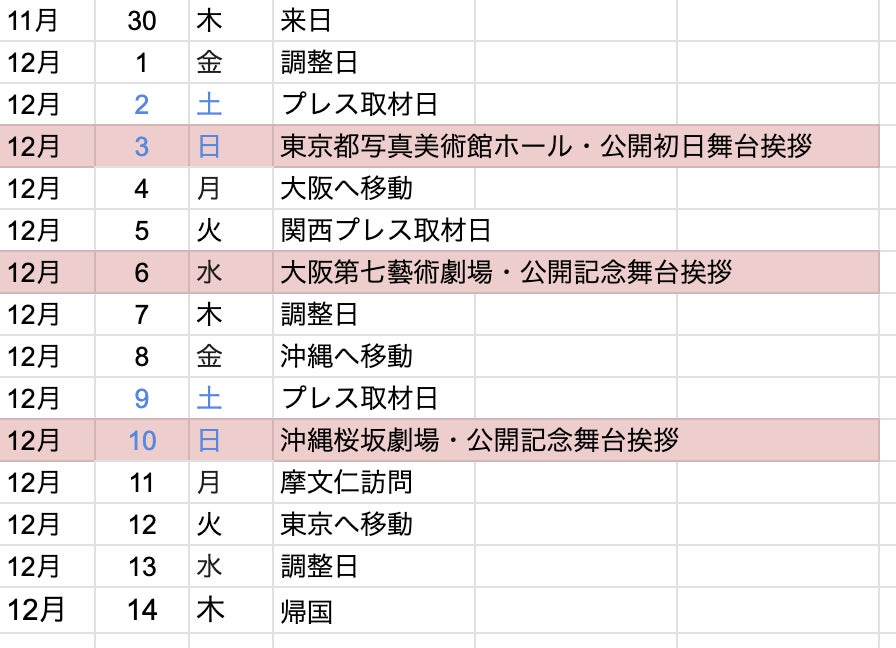 沖縄⇨桜坂劇場 12月10日(日)予定