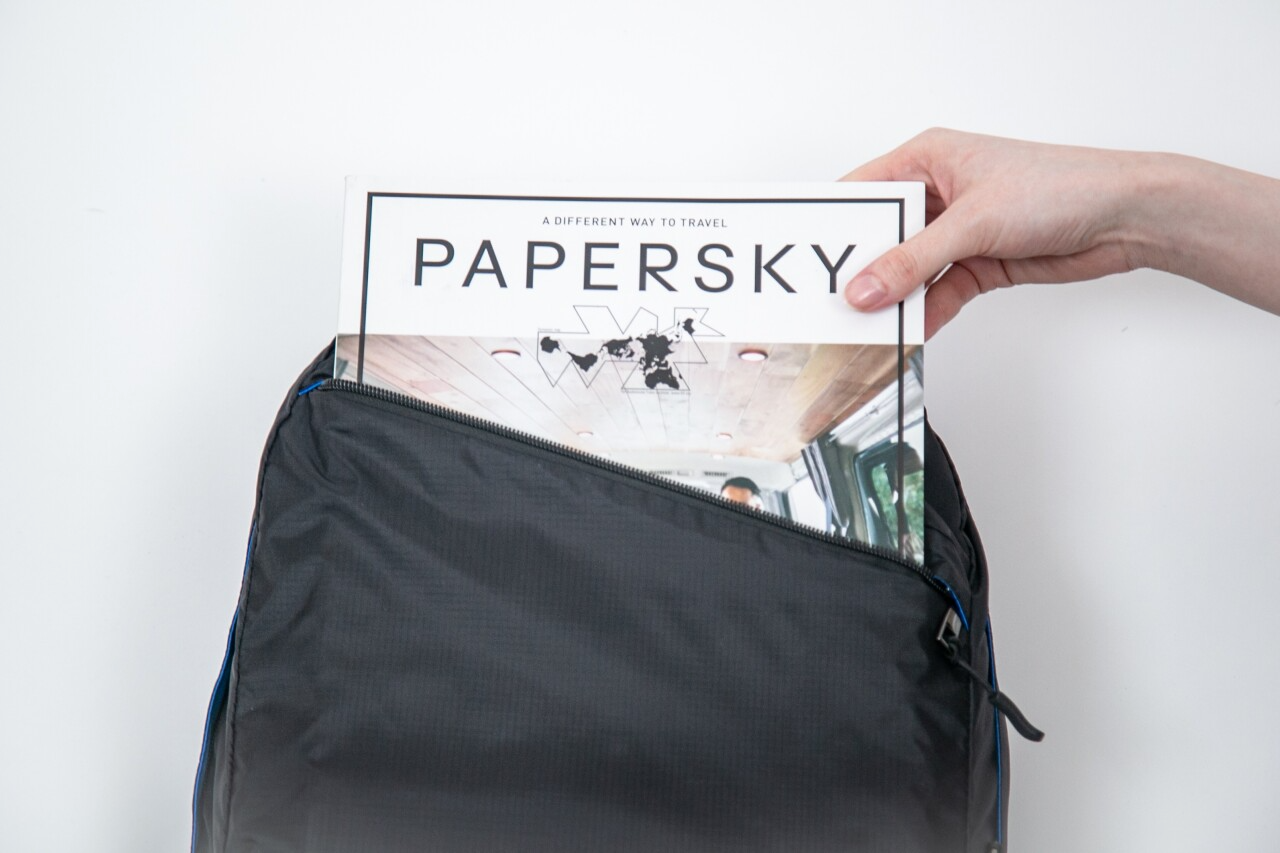 バックパックのフロントポケットには、購入した本、雑誌、新聞、などを入れておけます。
