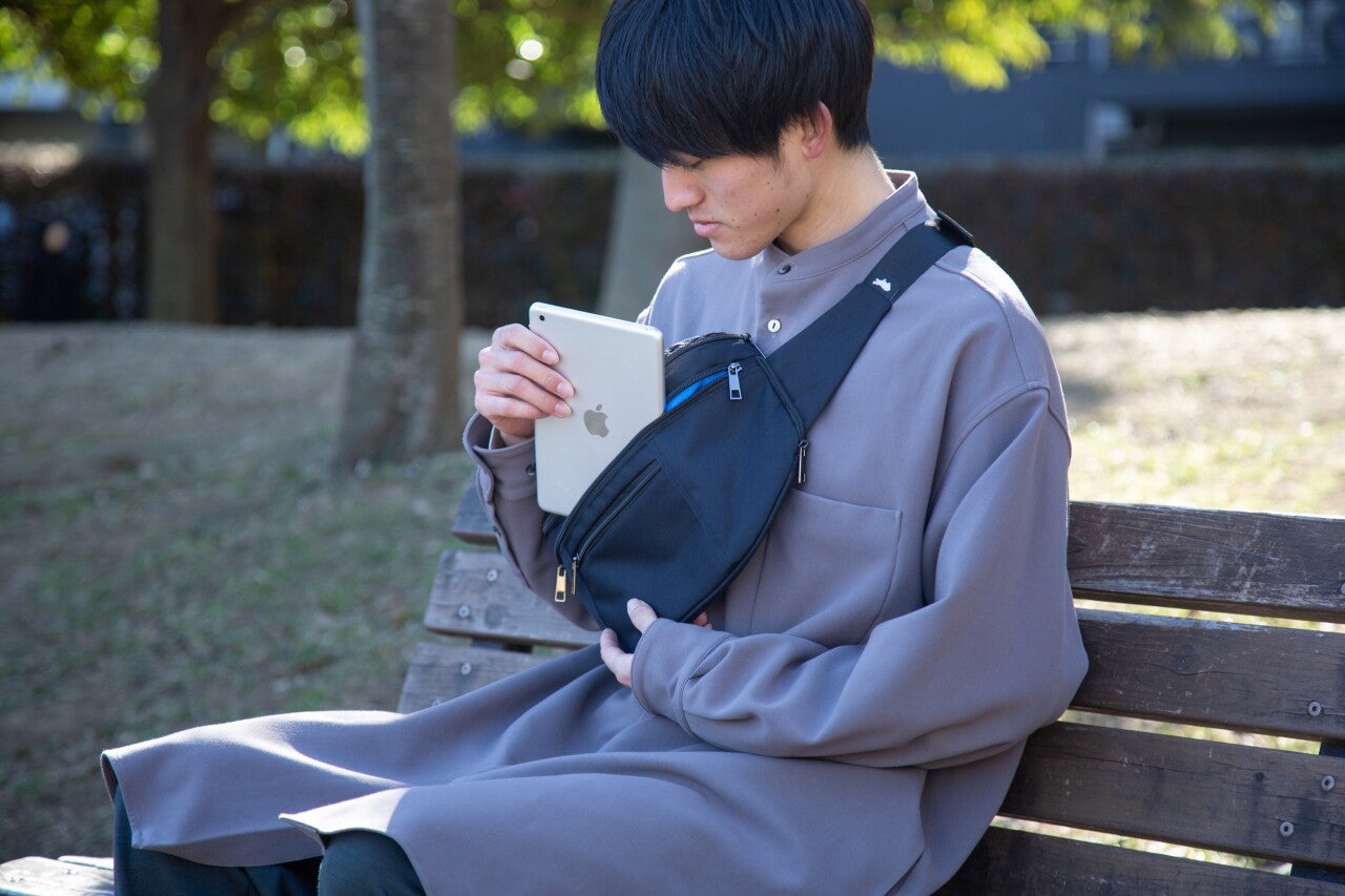 ボディバッグをくるりと前に持ってくることで、会計時や荷物の取り出しがスムーズ。