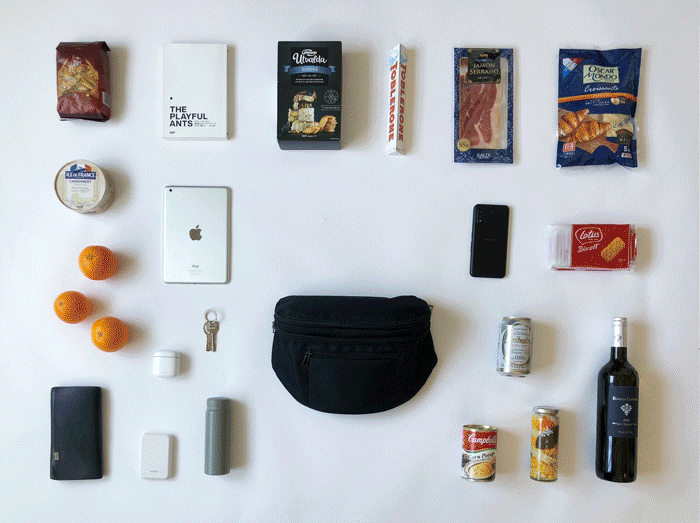 本、スマートフォン、モバイルバッテリー、イヤホン、鍵、 など