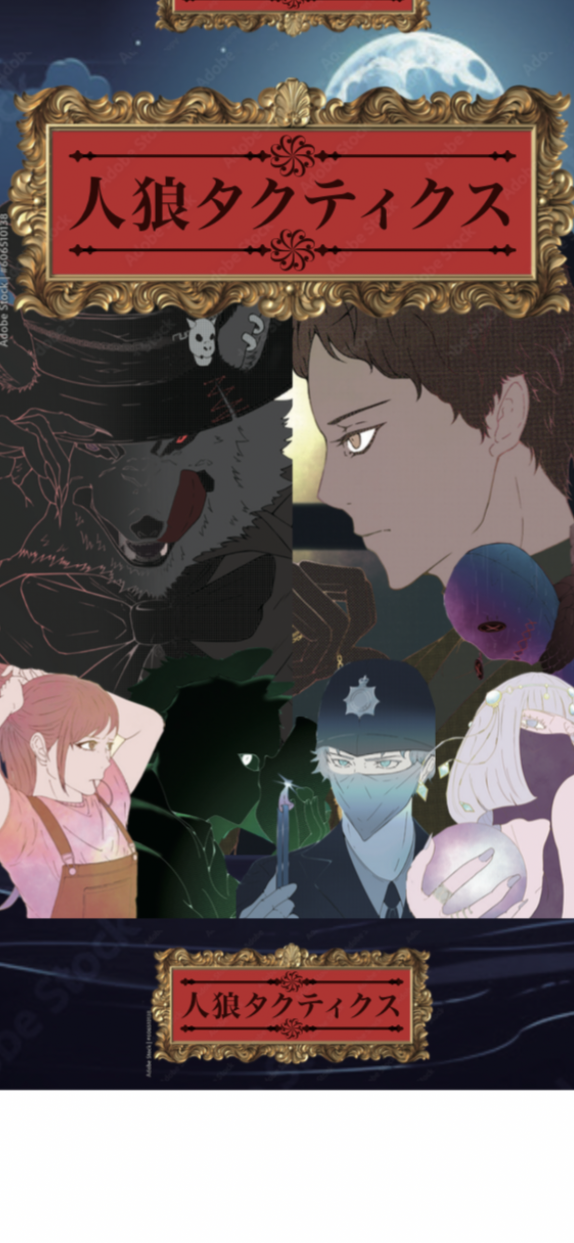 カードゲーム「人狼タクティクス」は、1人2枚配られる役職カードを手がかりに話し合い、各々の勝利条件を目指す人狼ゲームです。役職者のアクションやイベントカードによって一変する状況の中から本物の人狼を見つけ出す頭脳戦です。従来の人狼ゲームの欠点を克服した、少人数で遊べて、ゲームマスター不要、最後まで全員で話し合うゲームとなっております。役職設定、イベントカードによってはかなり多くの手がかり、異なる主張が生まれ複雑になるためカードゲーム好き、人狼ゲーム経験者には満足していただける内容となっております。